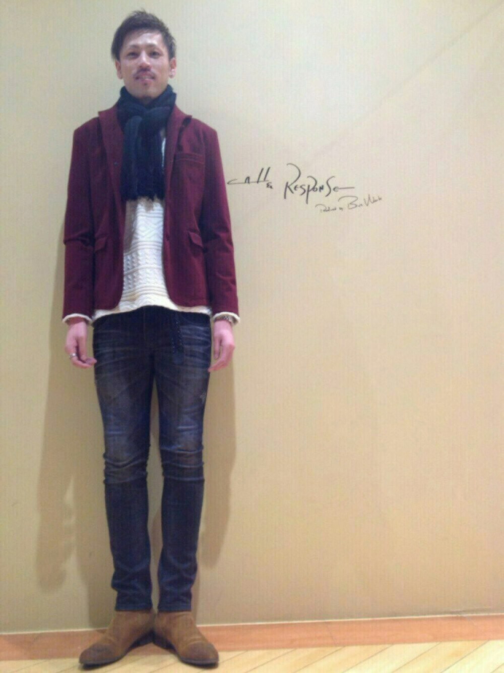 CALL&RESPONSE 宇都宮パルコ店 着用アウターはレーヨンベースの素材で伸縮性があり、裏地までストレッチが効いておりここまで楽な着心地はなかなかありません! スタイリッシュに着こなしたい方にぴったりのコーディネートです!