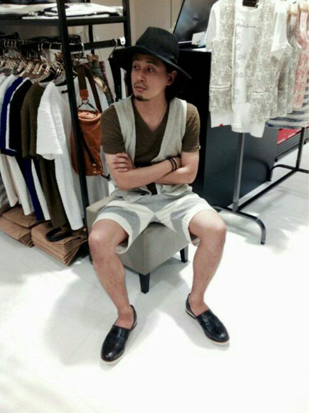 CALL&RESPONSE新宿マルイメン店 テーマ【雨の日コーデ】 新宿の人気アイテム ボーダーショーツ×スウェットベスト 色味を使いすぎず雨の日でも大人カジュアルに。