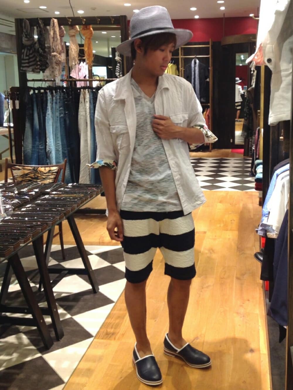 CALL&RESPONSE 大分店 テーマ【イチオシコーデ】 夏らしいマリンスタイルを提案。 爽やかで涼しい五分袖シャツを羽織り、履き心地が気持ちいいハーフパンツでまとめました。