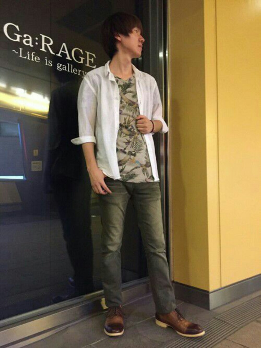 Ga:RAGE リバーウォーク北九州店 テーマ【リネンシャツ着まわしコーデ】 今期流行のコロニアルカラーが盛り沢山のコーディネート☆ 流行を取り入れつつも白シャツで清潔感を忘れずに♪ インナーを柄物にすると、透け感を楽しめますよ(^^)
