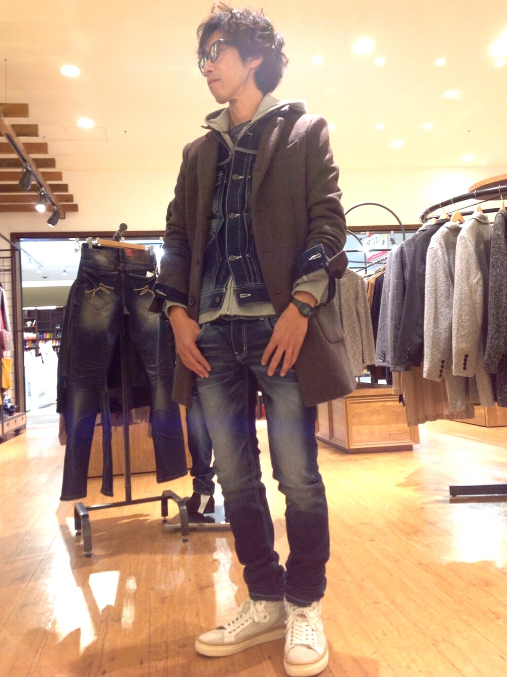 Ga:RAGE マークイズ静岡店 テーマ【30代からのコートで大人な街ブラコーデ】 今回は男のアメカジスタイルにチェスターコートをくわえ 渋く、ひたすら渋くコーディネートしました。 キレイめなアイテムをあえてカジュアルメインに着こなす。 大人のスタイルを求めているあなた! 私にお任せ下さい。素敵なアイテムをそろえてお待ちしております♪