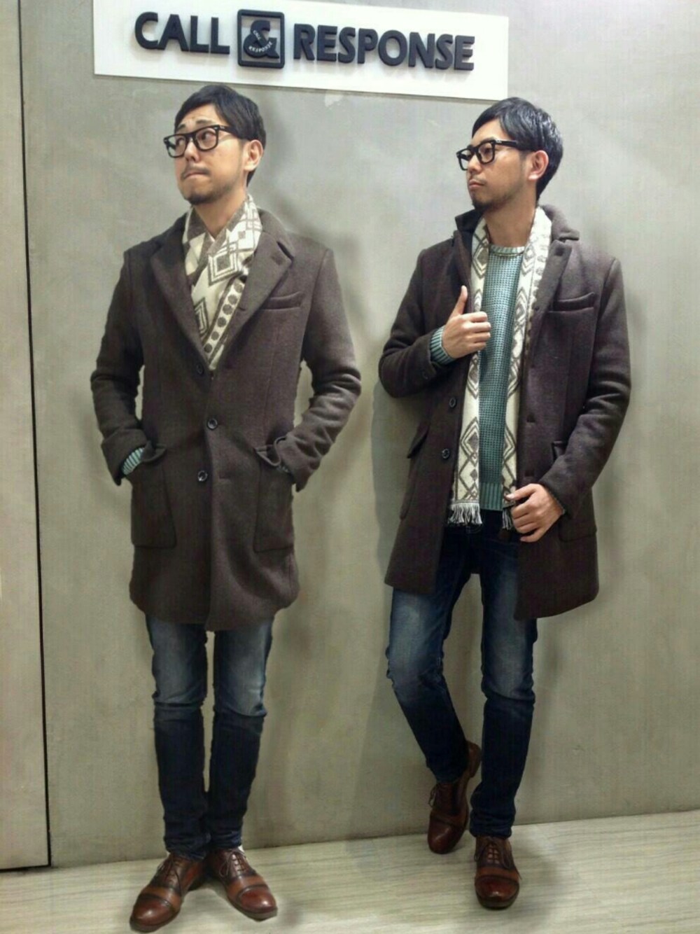 CALL&RESPONSE 池袋マルイ店 テーマ【マフラーオシャレ度アップコーデ】 若いときは、「真冬でも薄着が正義マフラーは邪道」 みたいな謎の侠気がありましたが・・・ 誰と戦ってるか謎なやせ我慢はもうやめましょう! お体ご自愛ください☆ コートのボタンを外しているときはシンプルにマフラーを肩掛けにして 寒い時は、マフラーをクロスにしてボタンを留めると更に暖かくオシャレ度アップ!! 巻き方ひとつでここまで雰囲気を変えてしまうマフラーをこの冬もっていないなんてもったいない!マフラーは自分で巻くもよし、となりにいるあの子に巻いてあげてもよし。 やさしさでこの冬を包んで下さいね♪