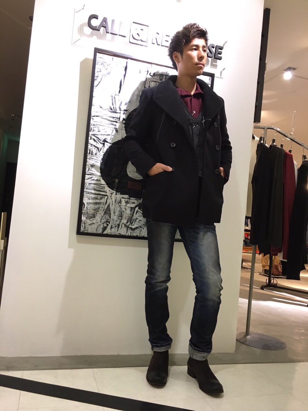 CALL&RESPONSE 天神店 テーマ【大人のクリスマスコーデ】 天神はイルミネーションが本格的に豪華になってきました。 そんな街中をスタイリッシュに歩いていきたい。 友達との待ち合わせ、彼女とのデート。 どちらにも対応した大人スタイルはなんといってもジーンズのシルエットがメイン。 かっこよく、大人っぽく着こなして頂きたい。 そんなコーディネートです♪