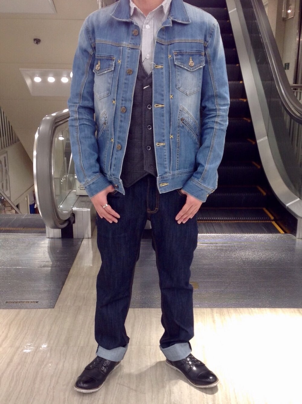 CALL&RESPONSE 池袋マルイ店 テーマ【Gジャン着回しコーデ】 Gジャンでキレイ目トラディショナルコーデもいいのですが、 ここは敢えて! オトコの骨太感がっつりの デニムonデニムスタイリングはいかがでしょう? そして注目すべきはこちらのシューズ。一見フツーの革靴ですが… …が!! クッション性抜群の驚きの履き心地(//∇//) 更にトップスのサイズ展開も、この春からより豊富にチェンジ☆ 今までよりもっとぴったりの一枚を見つけて頂けます! ぜひぜひ一度お試しにいらしてください♪