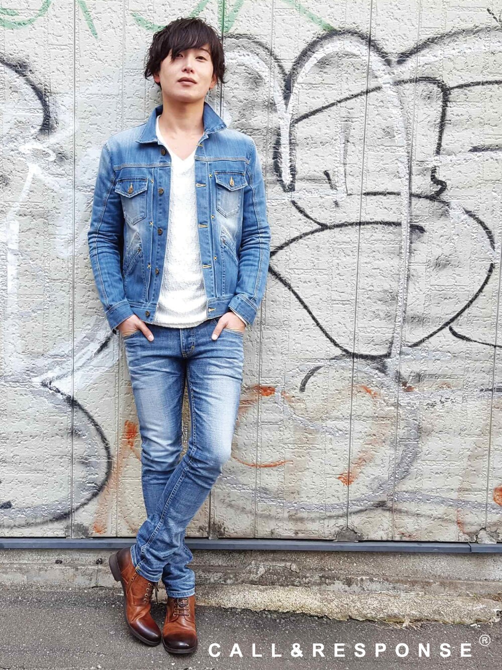 CALL&RESPONSE PressRoom テーマ【Gジャン着まわしコーデ】 CALL&RESPONSEの得意とするデニム生地をメインとしたセットアップコーデ。ヴィンテージ加工によりスタイリッシュかつ、日常になじむスタイリング。