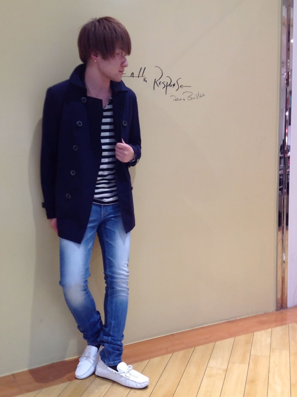 Ga:RAGE 宇都宮店 テーマ【春コーデ】 今年の春はまだまだ寒い!ということでカットソーの上にジャケットを羽織るなら薄手のトレンチコート!ボーダーカットソー、ジーンズ、ドライビングシューズを合わせ大人のマリンテイストを演出してみました!アウターが濃い目だとよりスタイリッシュにみえますね♪