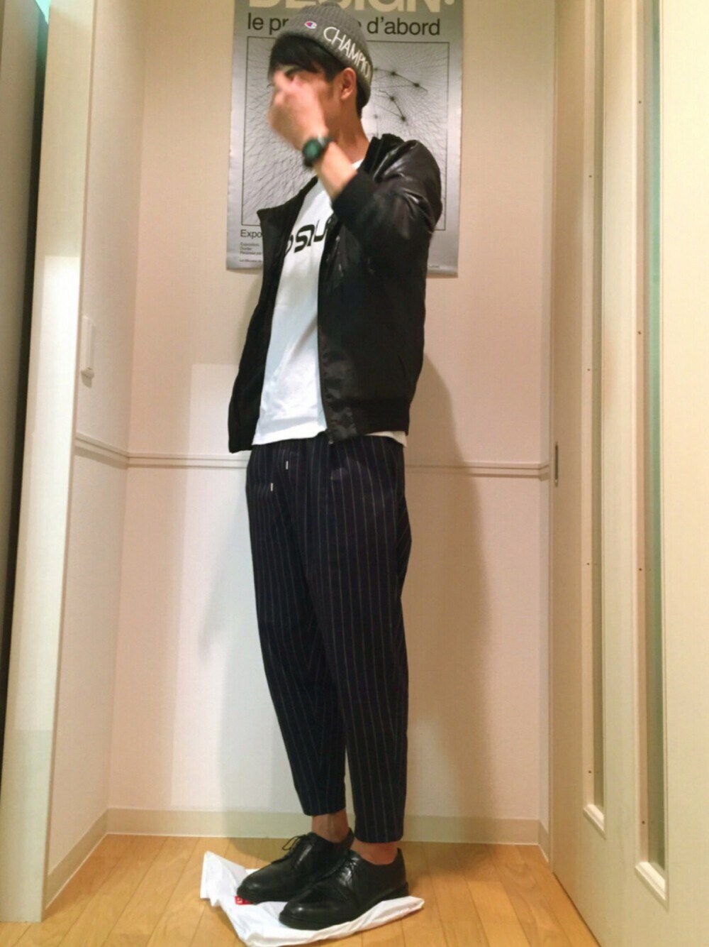 パンツは今日下ろしました。ストライプで上品さを出しつつ、あくまでシルエットはゆる〜く…