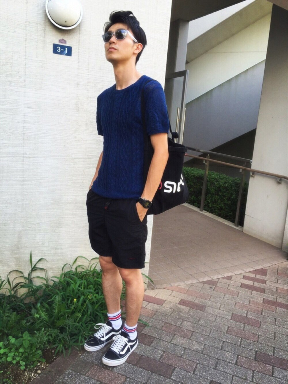 アカネうどんのサングラス「OAKLEY / Frogskins ASIA FIT アイスイリジウム」を使ったコーディネート