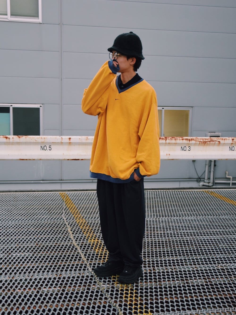 オールブラックのキレイめスタイルに スウェットとホカのシューズでスポーツミックスにしました。 ビッグサイズのアイテム多めだけど帽子とメガネと、首元の露出でメリハリつけてます。 ホカオネオネのbondiかわいすぎ…🤦♂️ やっぱスポーツブランドすきだなー自分😗 Instagram 【calm_ngt】↩︎こちらもお願いします。