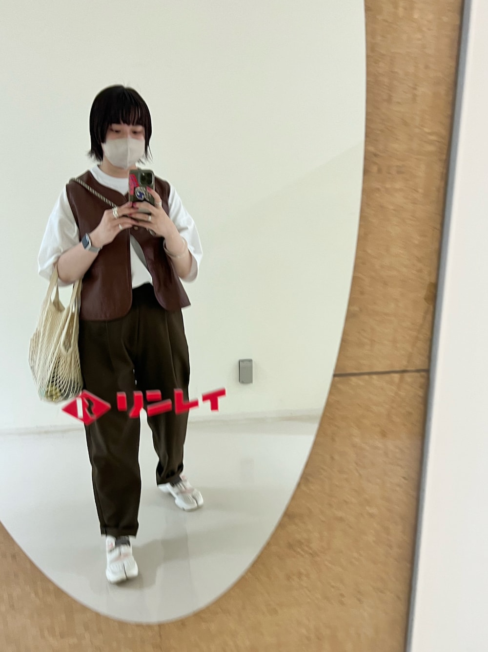 で んのベスト「2wayフェイクレザーベスト」を使ったコーディネート