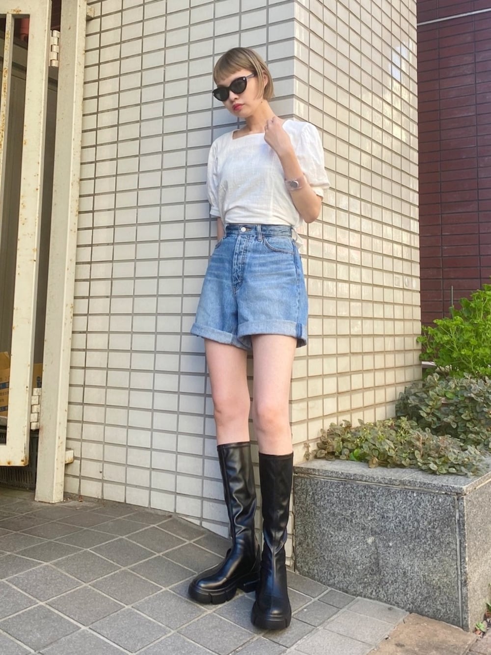 夏のスタイリングにロングブーツを履くだけで秋感。
