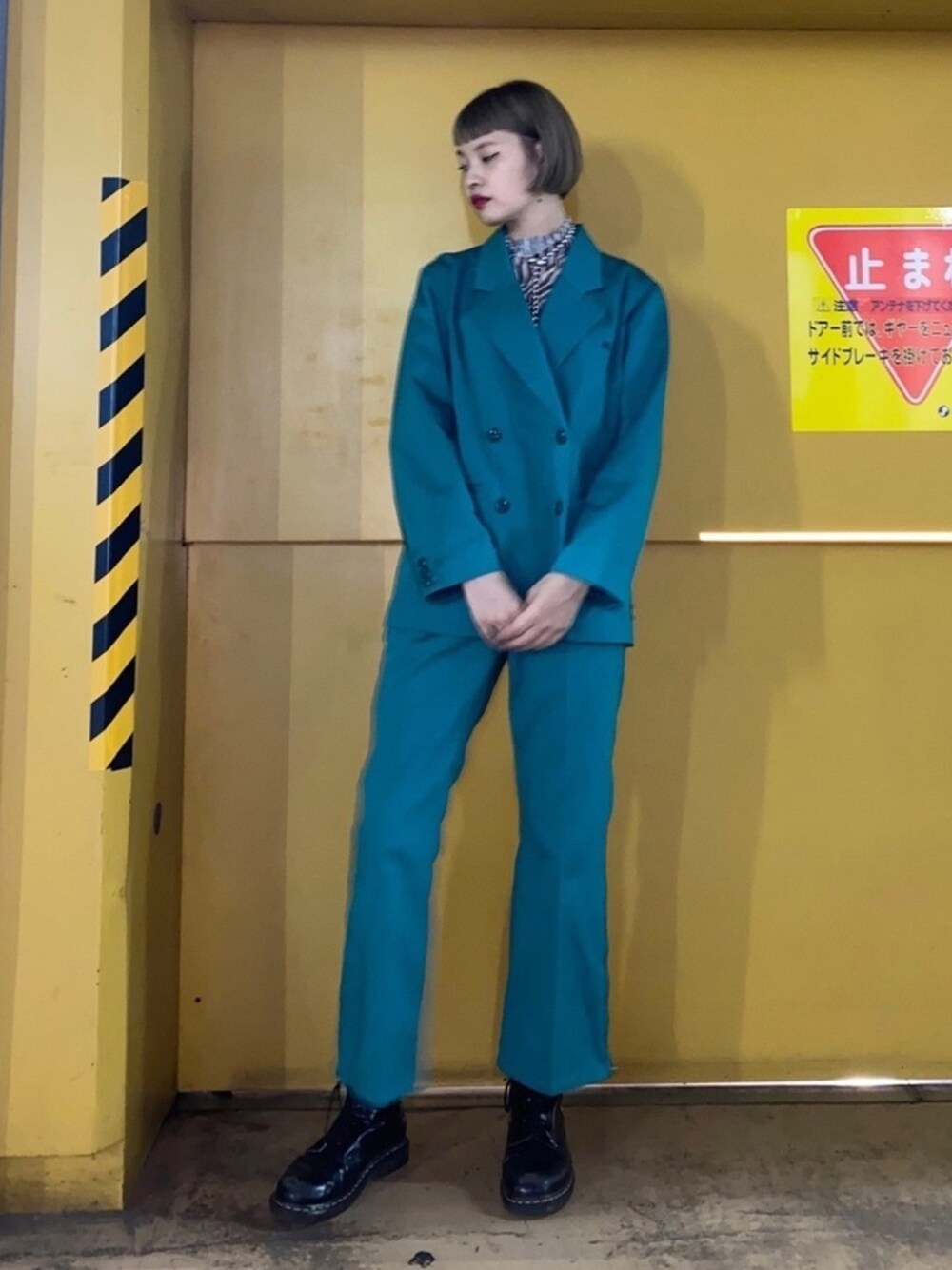 レトロなダブルプレストジャケットの セットアップ。 Dickiesコラボなので 生地はワークディデールでカジュアル。