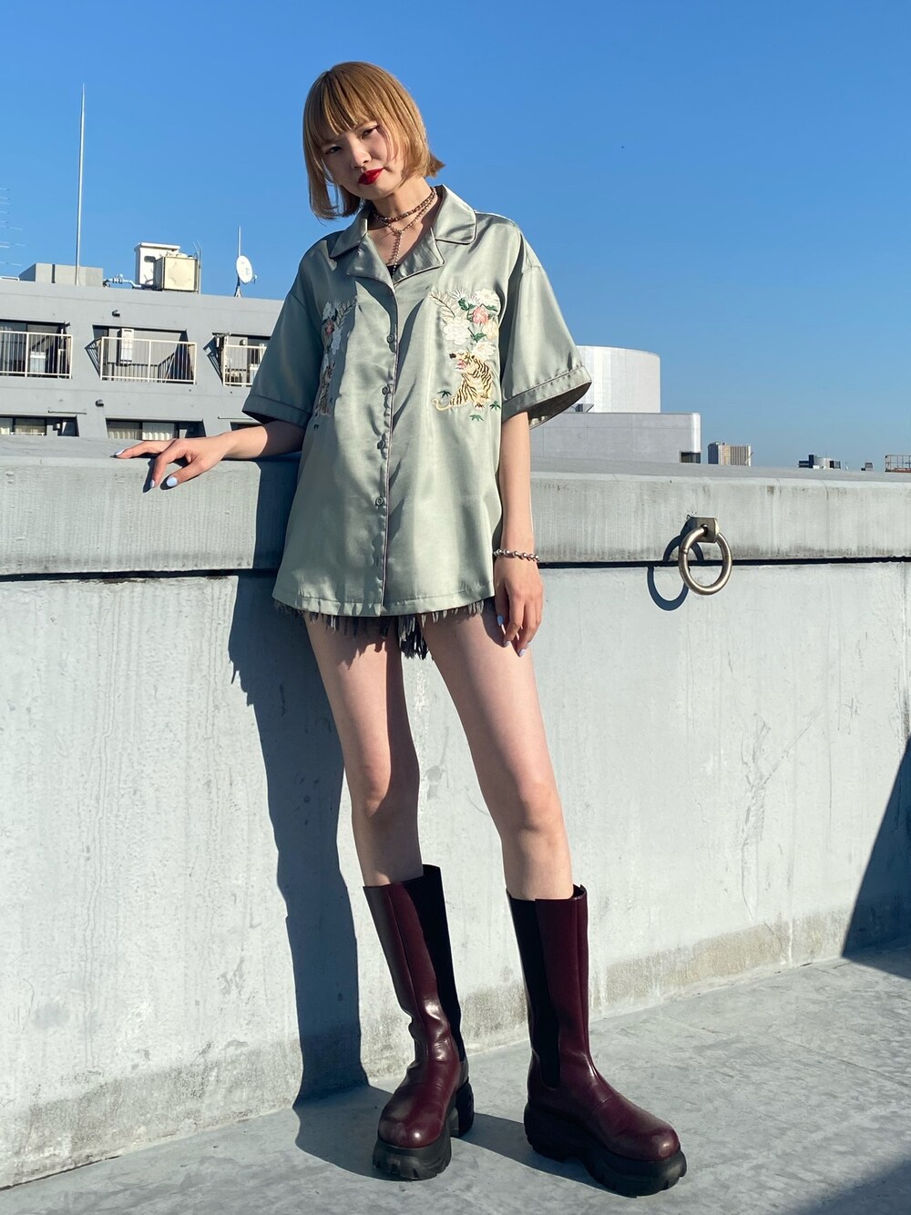 オーバーサイズのシャツは、 ショートパンツで1枚で着るのが好き◎