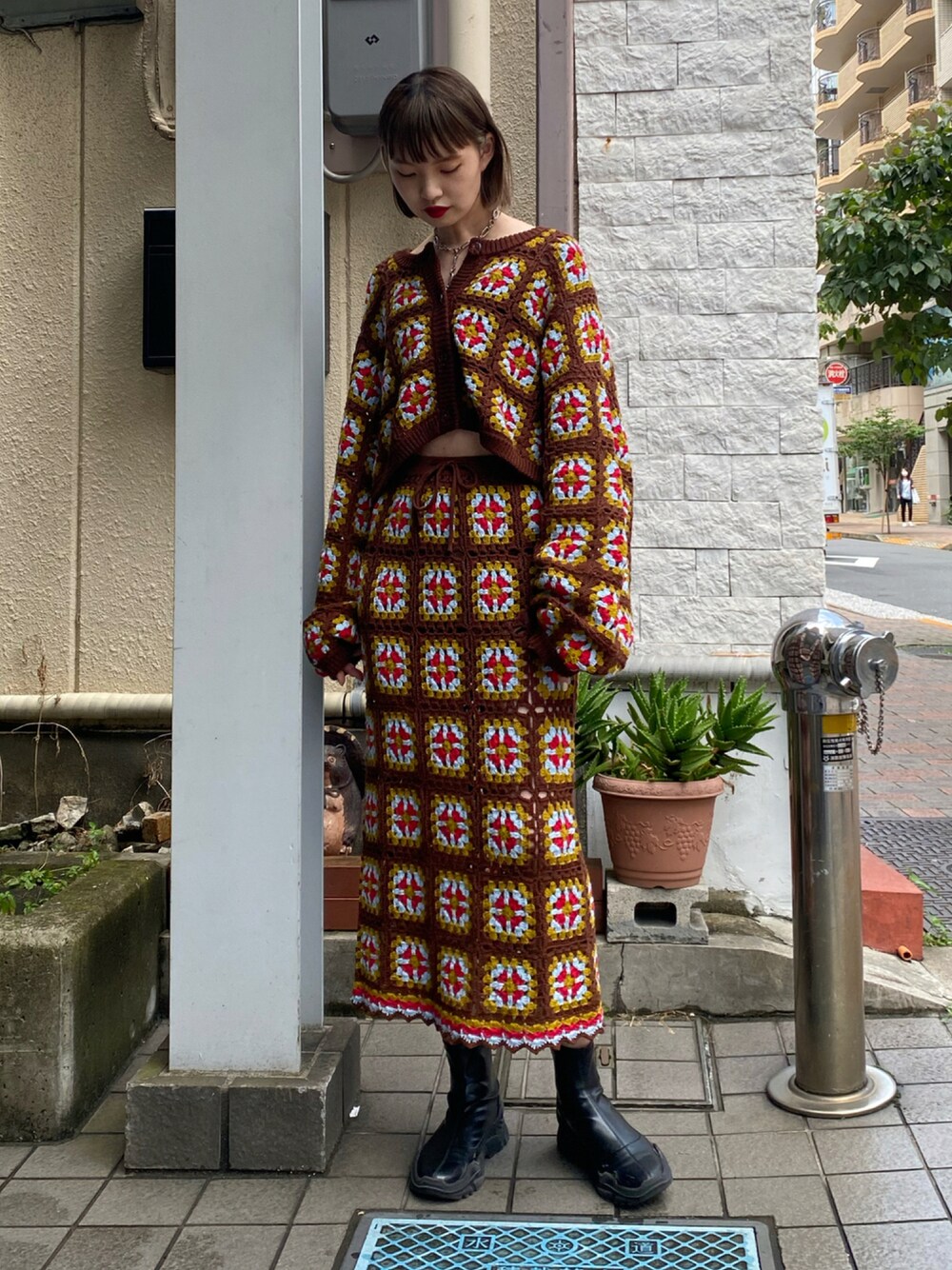 cameronのスカート「【セットアップ対応】クロシェロングスカート」を使ったコーディネート