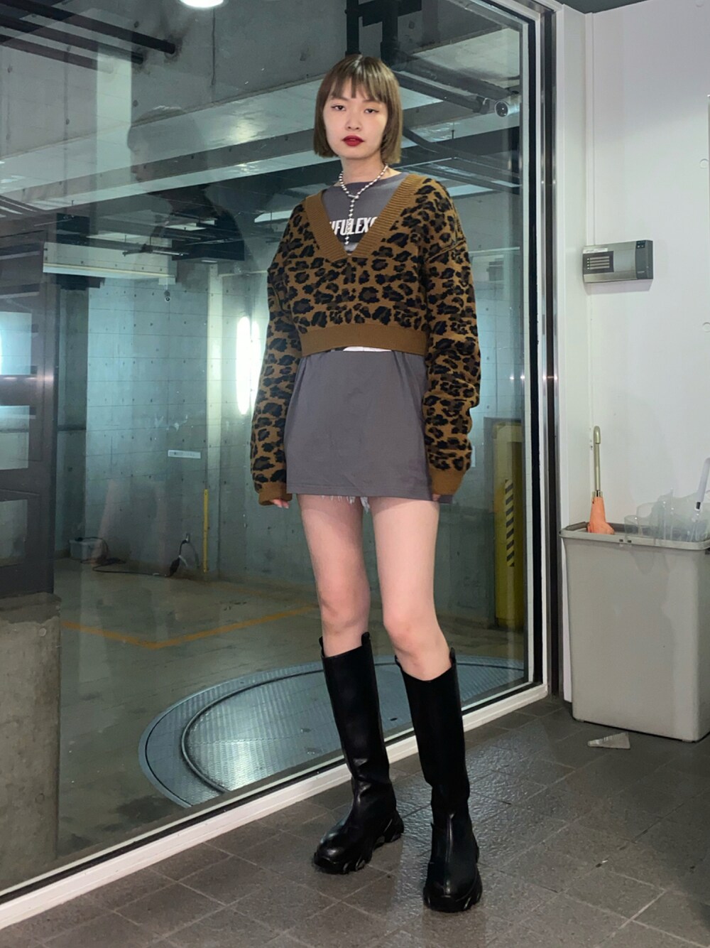 ニットとロンTが セットになったアイテム。 ロングブーツ合わせで秋口コーデ。