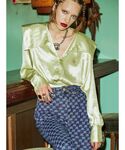 ビックカラーのブラウスは モノグラムのデニム合わせだと モードな印象に。