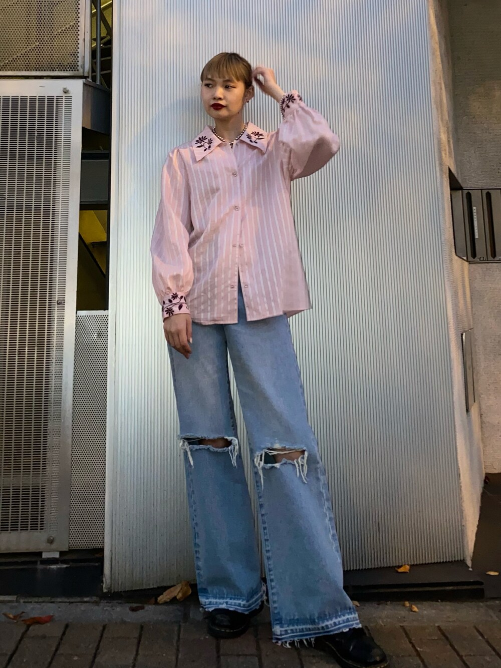 襟と袖口に施された刺繍がかわいい ブラウス。 オーバーシルエットなので裾は出して ゆるっと着るのが◎