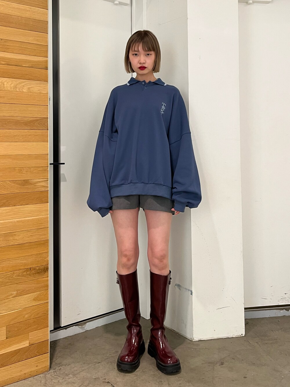 ポロシャツのような ディテールのスウェットは 古着風でゆるくてかわいい◎