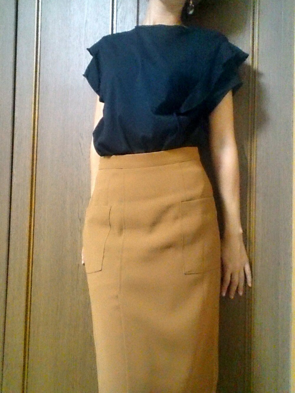 お疲れさまです✨ 鞄と靴はグレーでしたので 今日は秋色成功で😆やったー! スカート背景と同化してるけど、、、 前にスリット入っているから歩きやすいし、チャリもよゆー! ただ半袖だと寒かった~笑 シルエットが昨日とそっくりでつまらんな!笑
