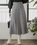 フレアシルエットが絶妙なツイードスカートが主役のモノトーンコーデ。 ハリのある素材のスカートで、体型をスッキリ綺麗に見せてくれます。 ロング丈で野暮ったくならないトレンド感のあるデザインです。 モードな雰囲気のコーデには、ふわっと柔らかなラクーンニットを合わせて女性らしさを。