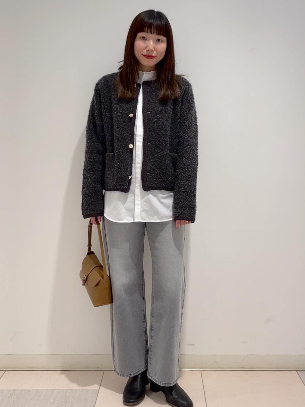 ループ網カーディガンとシャツの合わせ、デニムパンツとブーツはパリジャンの定番コーデで憧れますよね✴︎ 質感を大事にしてより本場の雰囲気に近づけたいものです✴︎