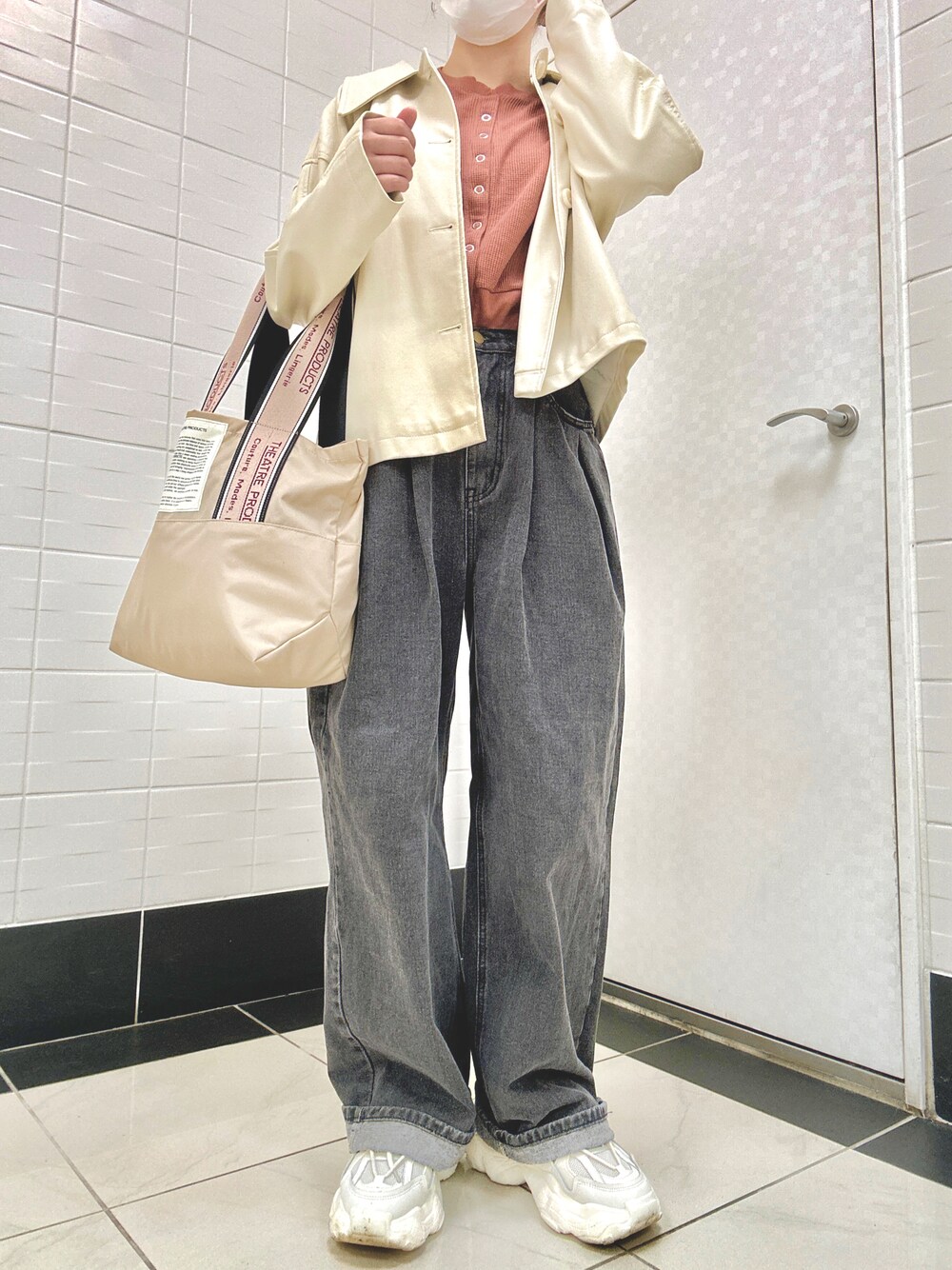 nnaのトートバッグ「THEATRE PRODUCTS/シアタープロダクツ JACQUARD TAPE BAG/ジャガード テープバッグ」を使ったコーディネート