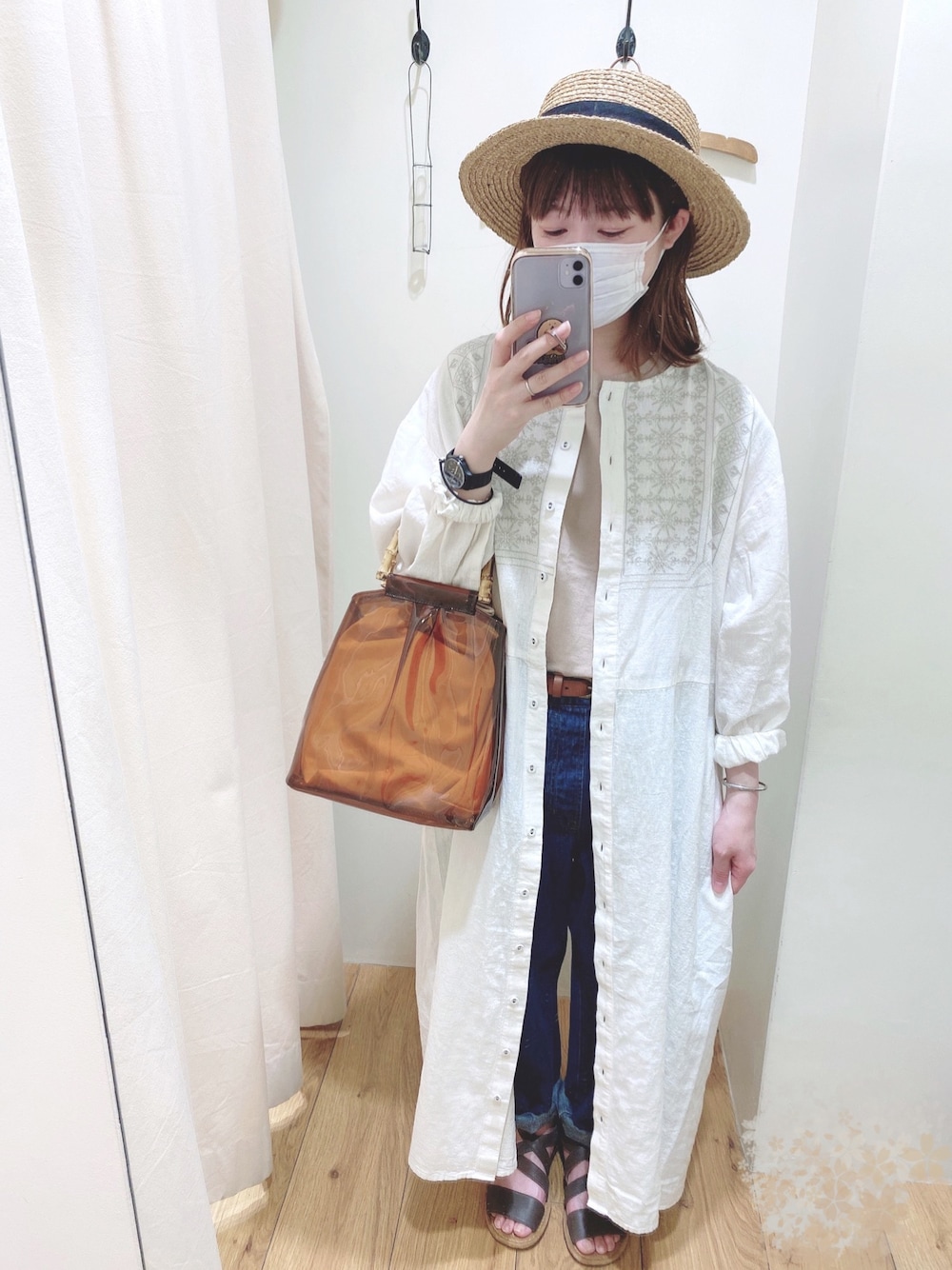 ちば𓍯のワンピース「綿麻刺繍ワンピース」を使ったコーディネート