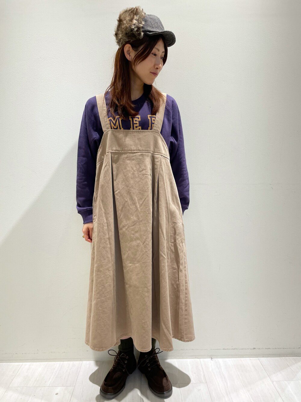 【Samansa Mos2】 オーバーシルエットで一気にトレンドライクな雰囲気に なれるスウェットはマスタードのロゴが映えるパキッとした パープル地をチョイスしてカレッジ感の強い印象に。 レースアップブーツと胸元タックで揺れ感のある ジャンスカの組み合わせでカジュアル可愛いコーデです🥾 〈No.301〉