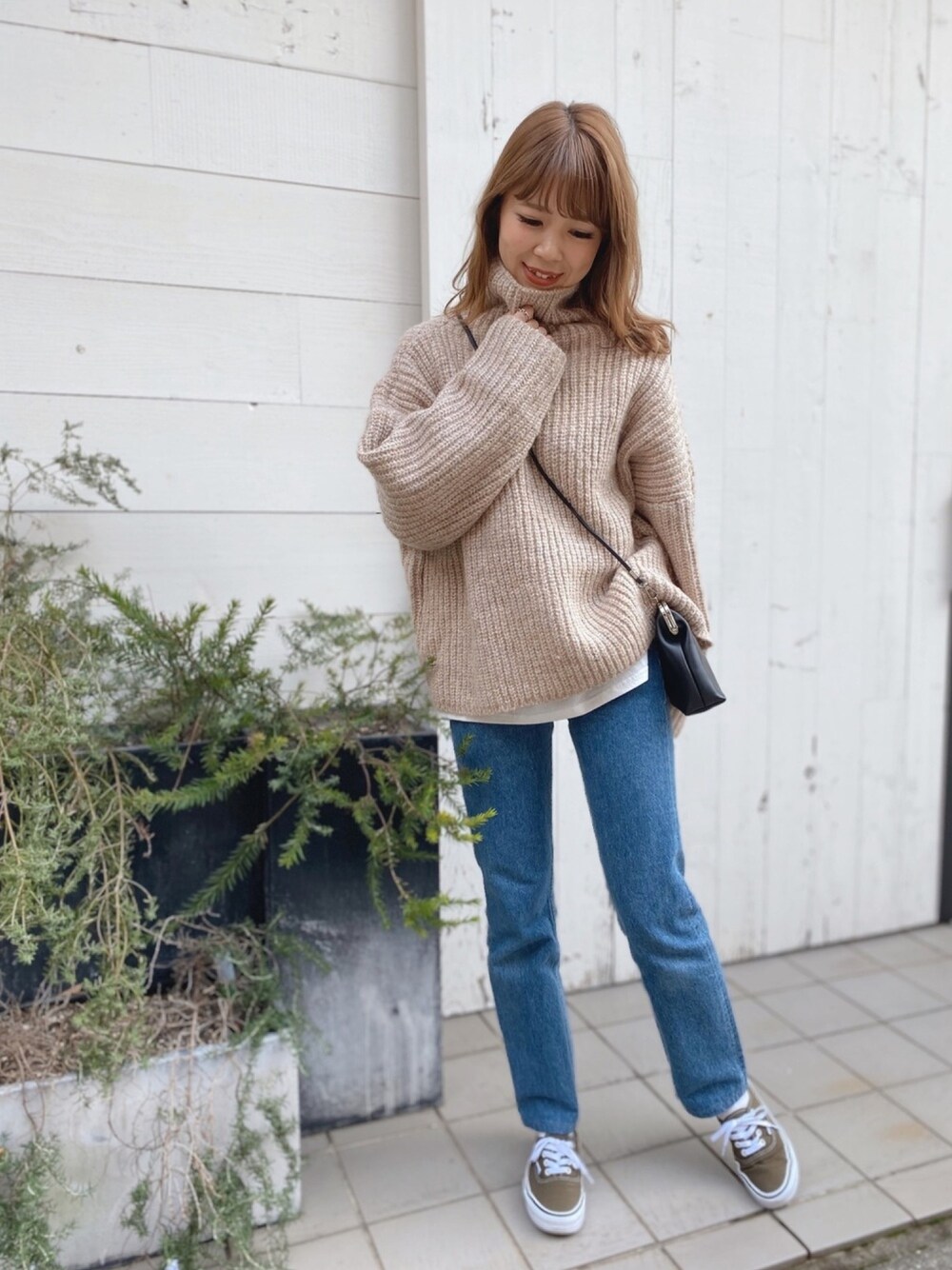 たぽっとしたシルエットに 畔編みが可愛いKnit🧶 ロンTをチラ見せするのがpoint♡ kanami