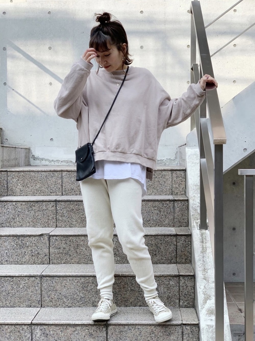 サラリと着れるシンプルなトレーナー✧ ポイントにロンTを挟んでみました^ ^ 緩くて楽なコーデが好き♩ mayumi