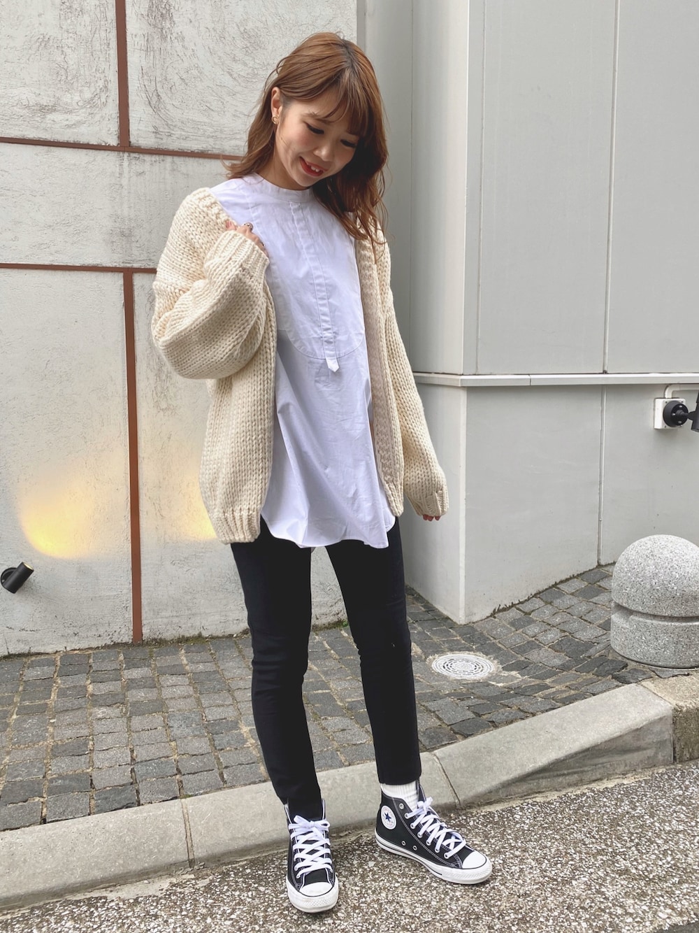 履き心地&シルエット◎の 裏起毛スウェットPAに ドレスシャツを合わせて モノトーンだけど少しだけ春気分🌸 kanami