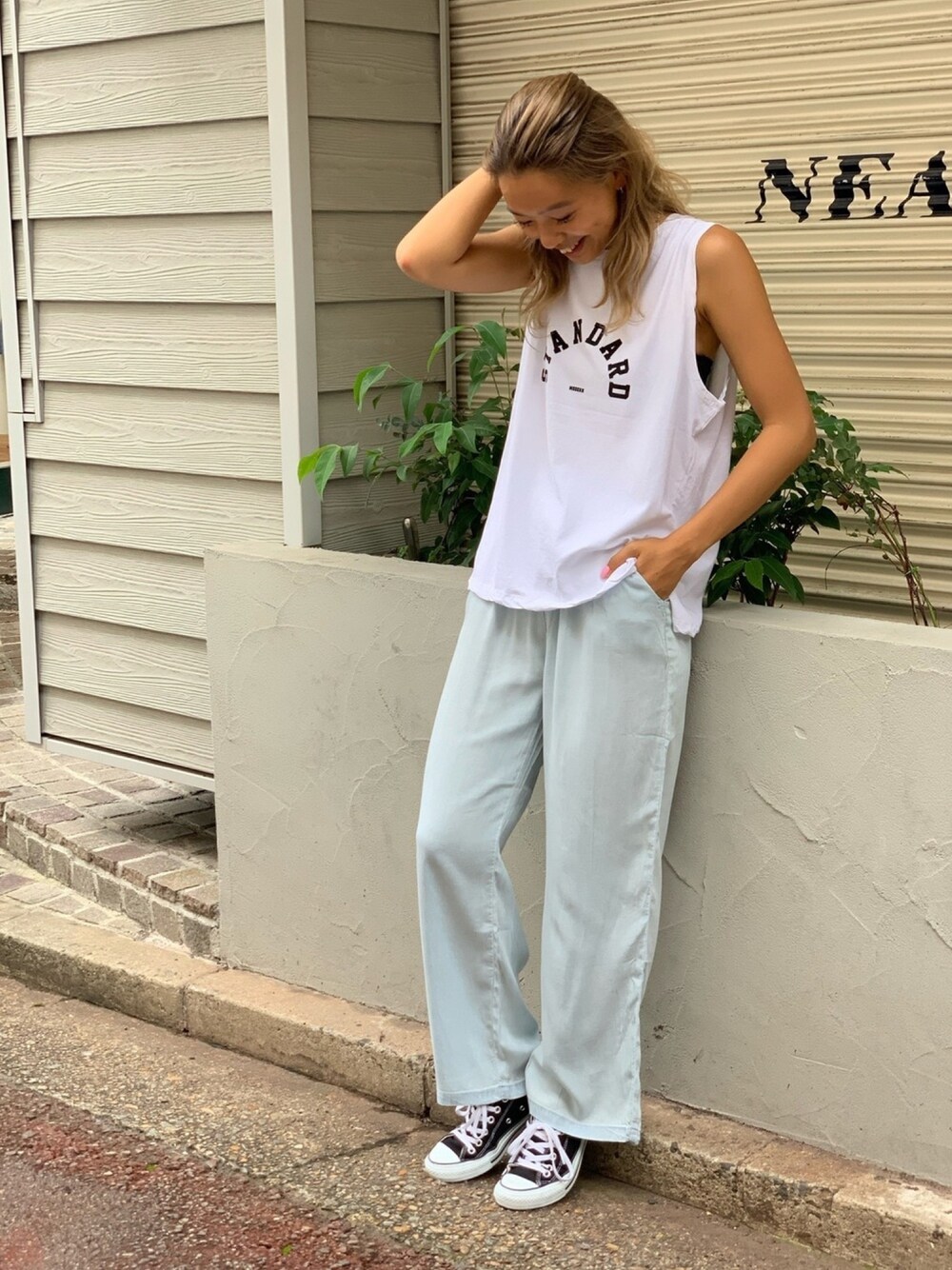 CANAL JEAN 神戸店のタンクトップ「via j(ヴィアジェイ) "STANDARD"ロゴタンクトップ」を使ったコーディネート