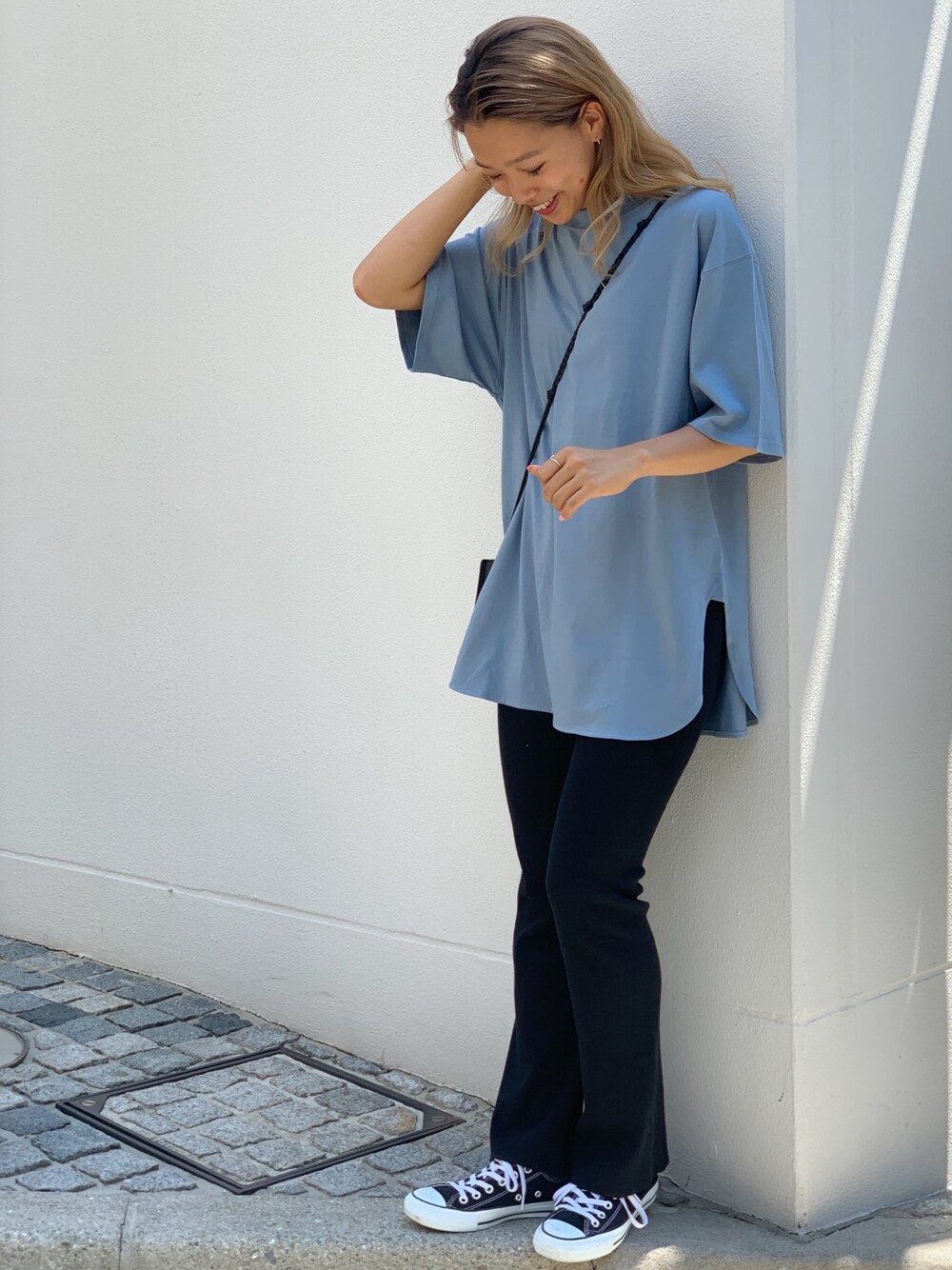 オーバーなサイズ感と色がお気に入りのサイドスリットTシャツ♡ スニーカーでカジュアルに🙆🏽♀️ ran