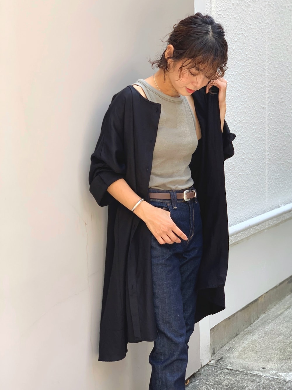 少しずつ涼しくなってきたので やっと秋物の出番! 開けても閉じてワンピっぽく着るのも可愛いシャツ☺︎⁑ joy…155cm