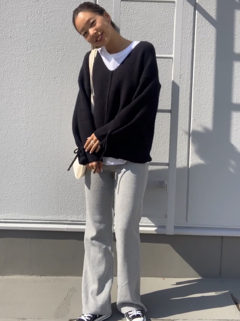 カシミアが入ってて肌触りの良いブークレニット♡ VネックなのでインナーのロンTでカジュアルに✨ ran