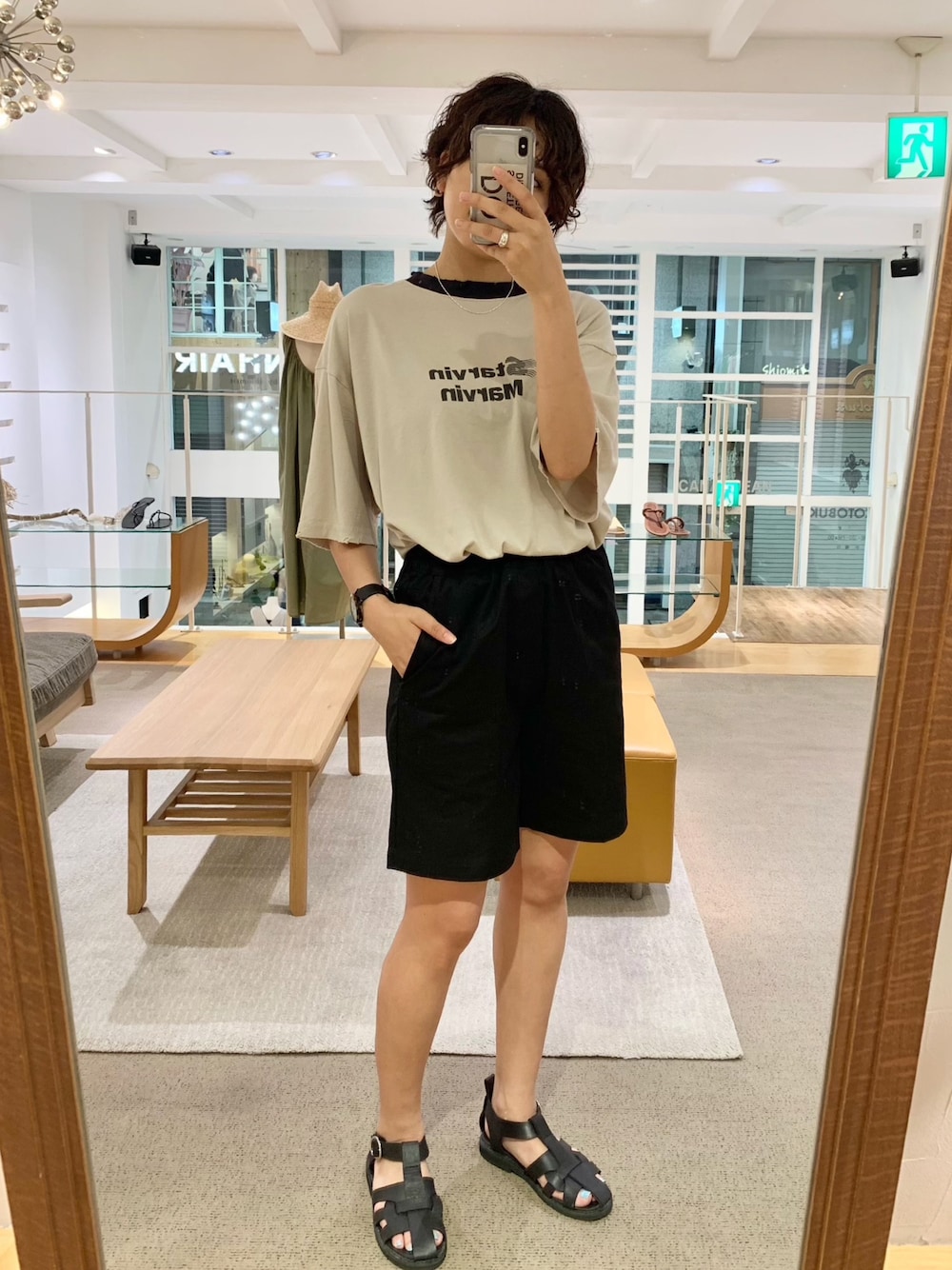 人気のTシャツは、 ショートパンツのブラックと合わせて大人カジュアルな雰囲気に♪ hama
