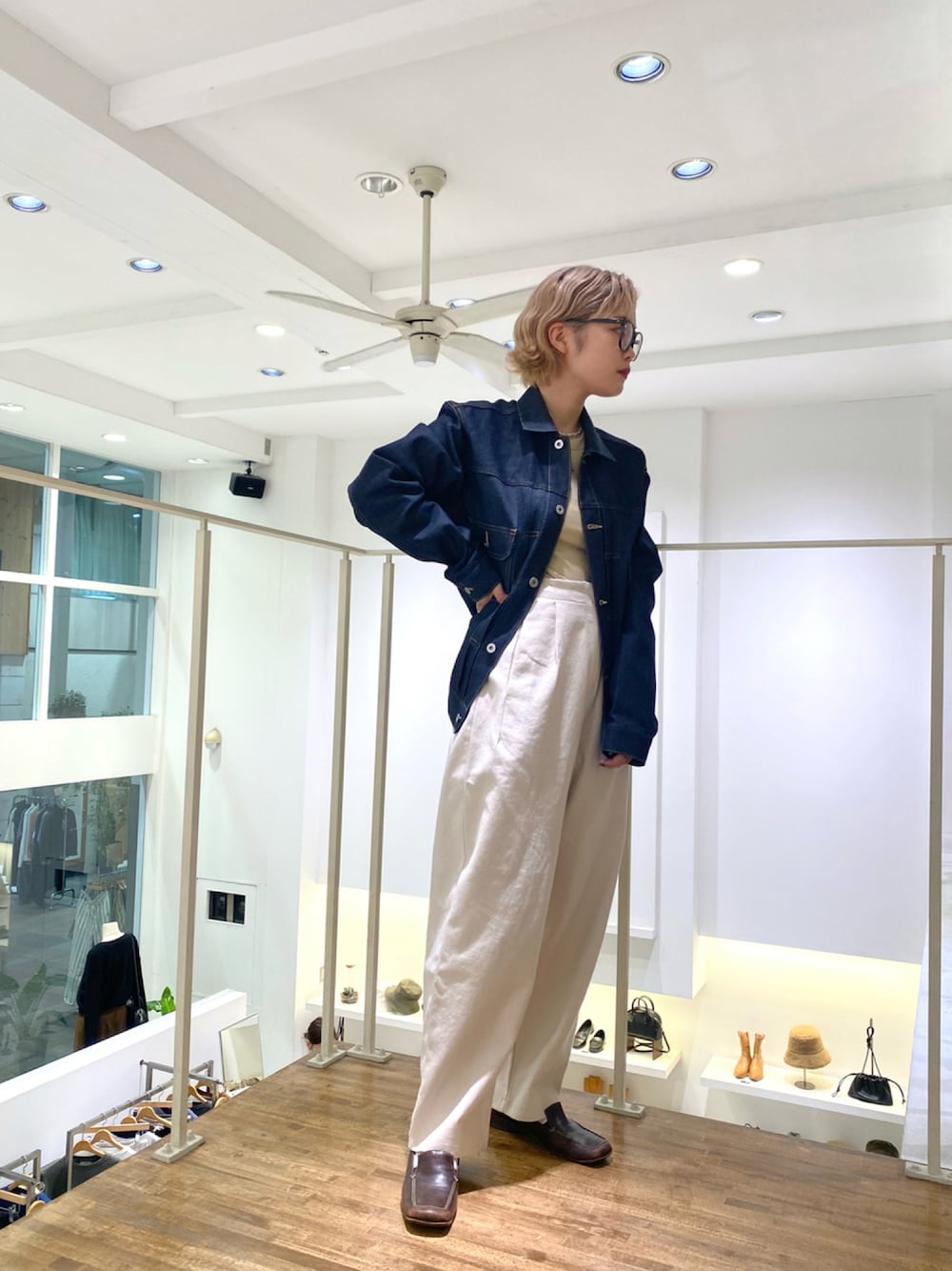 YA-YAのノンウォッシュデニムジャケット、 色合いとオーバー過ぎないシルエットが、綺麗めのコーデに最適😌 この時期のアウターとして大活躍しそう‼︎ Kiki…159cm