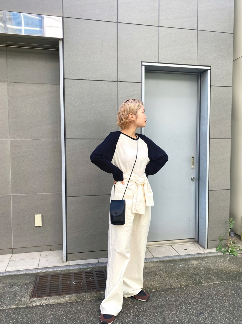 ラグラン配色ロンTは程よい透け感のある薄さで今の季節にちょうどいい◎ 珍しい黒とアイボリーの配色、かわいい❤︎ Kiki…159cm