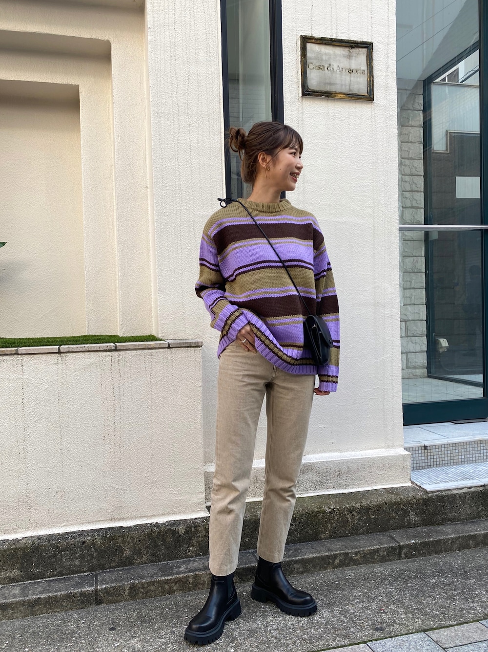 一枚で可愛いボーダーニット💜 色味も珍しくて可愛い…☺︎ kanami 164㎝