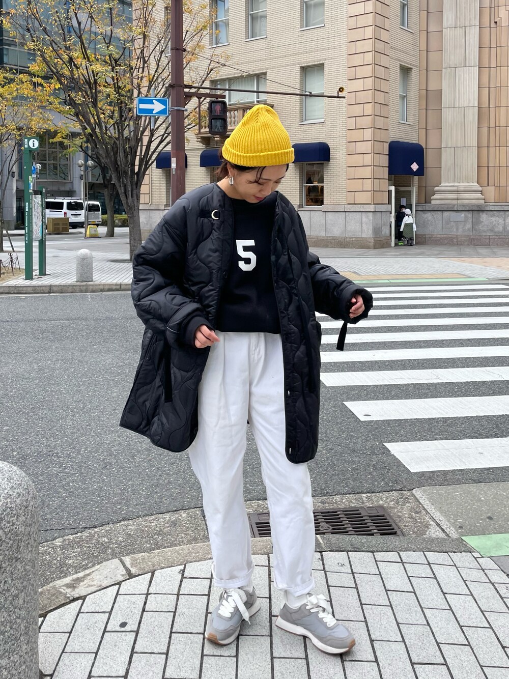 柔らかい裏起毛素材が暖かくて お気に入りのスウェット❄️ 人気のライナージャケットは あえて黒でまとめてみました❤︎ hama 163cm