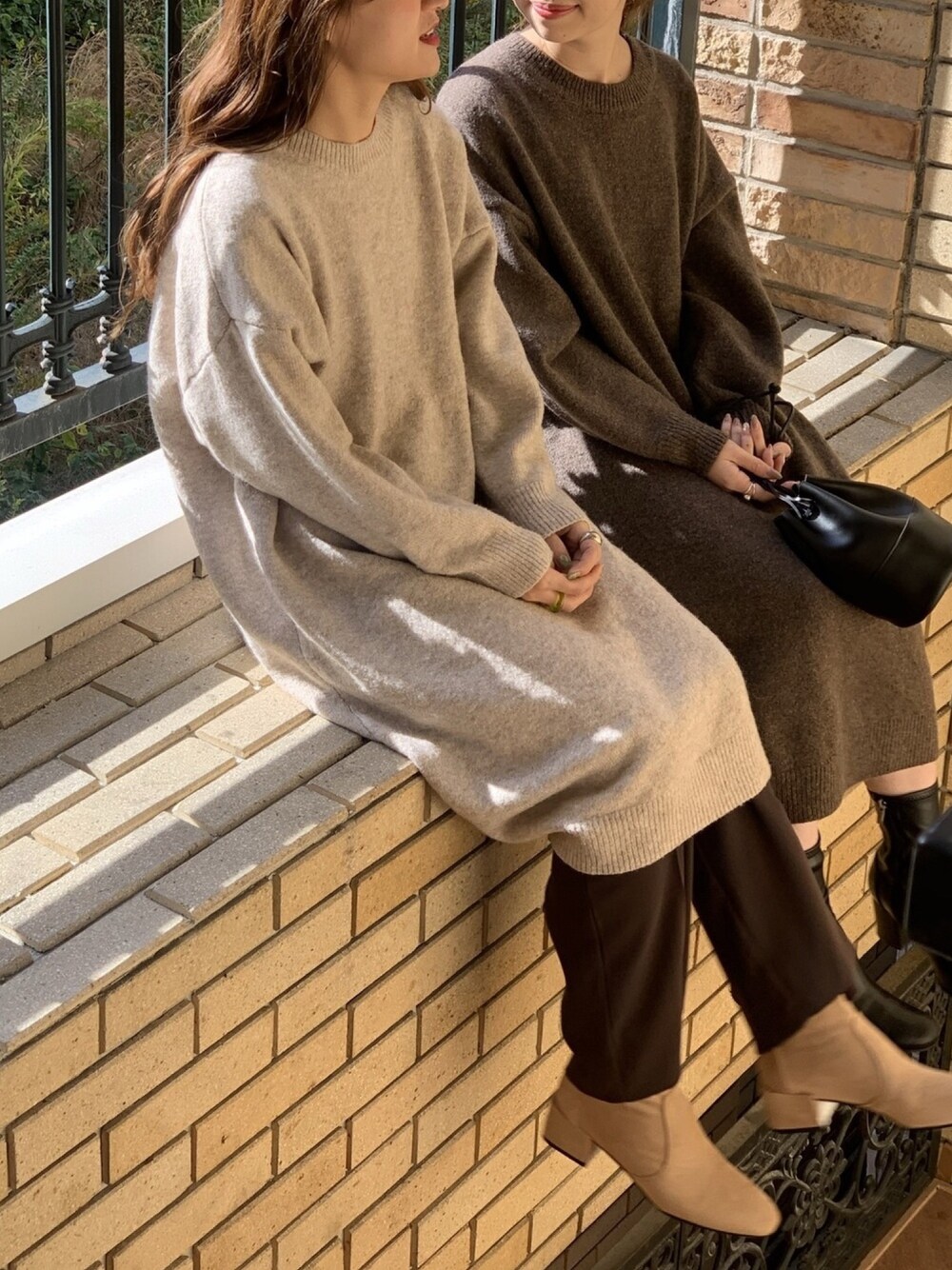 ニットワンピース🧶 丈感が長すぎないので 低身長の方にもオススメアイテムです♡♡ ワンピースの下にパンツやレギンスを 合わせてもかわいいです🥺