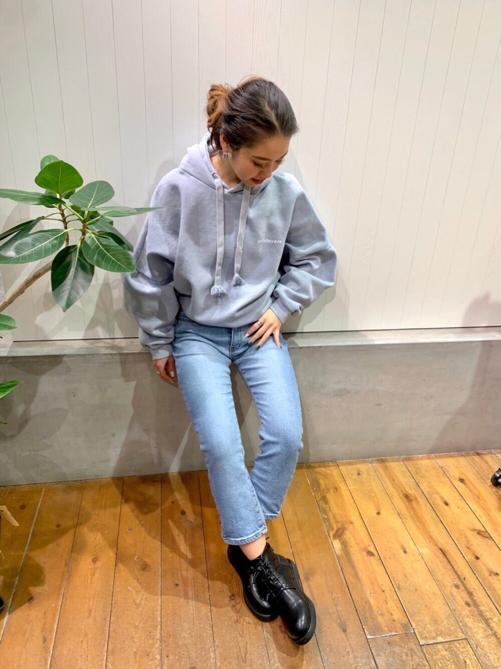 くすみブルーが可愛いオーバーサイズのパーカー♡ 春先まで活躍しそうです( ^ω^ )