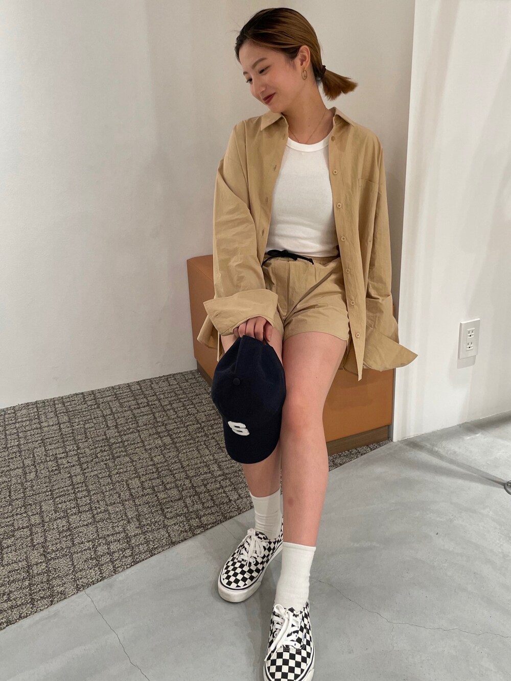 ベージュの色味がお気に入りのセットアップをスポーティーに合わせました🧢🏁👟 Rio 157cm