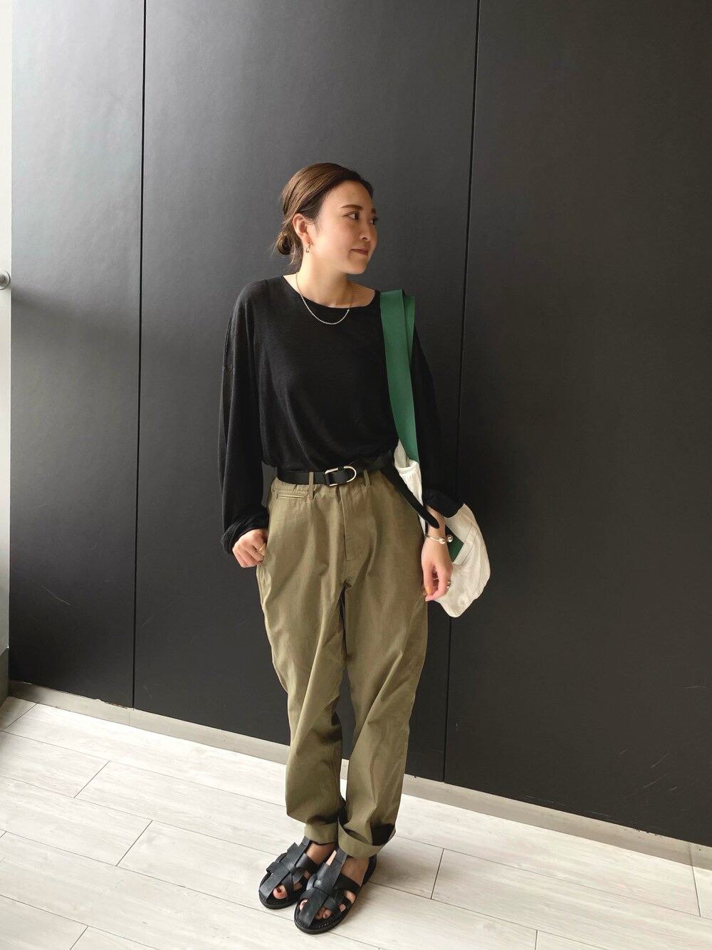 シアーのロンTとカーキ合わせで秋を意識してみました🍃✨大きめbagもカワイイー🥰 mzk 158cm