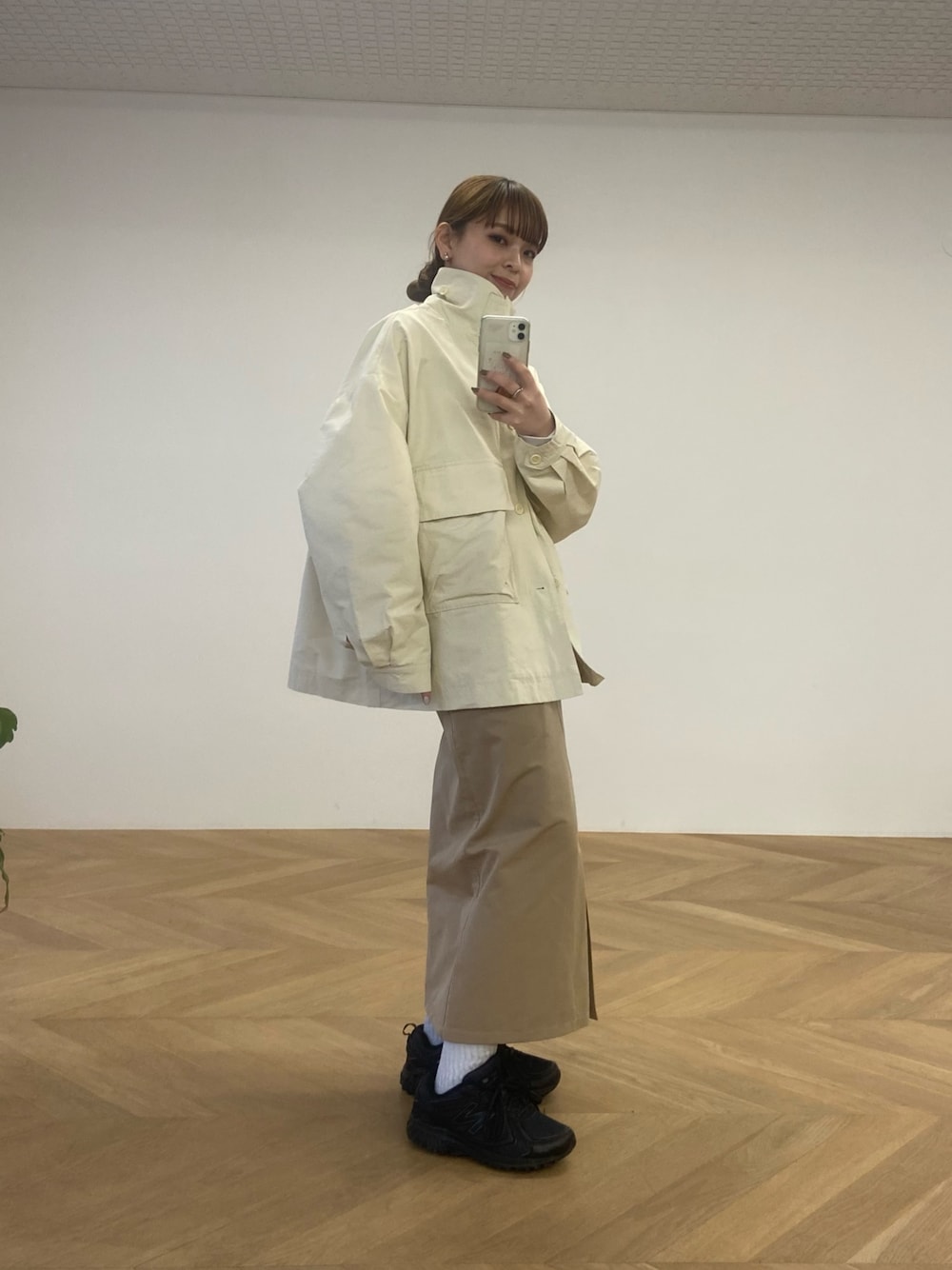 ☑︎新作スタンドカラーポケットジャケット スタンドカラーにもできて、シャツ襟にもできるのが可愛い〜!! 春にかけて持っておきたいアイテムです🩵 ☑︎新作のポケットロングスカート こちらはウエストにドローコードがついていて、ナイロンスカートだけど薄過ぎないのでオールシーズン使っていただけます◎