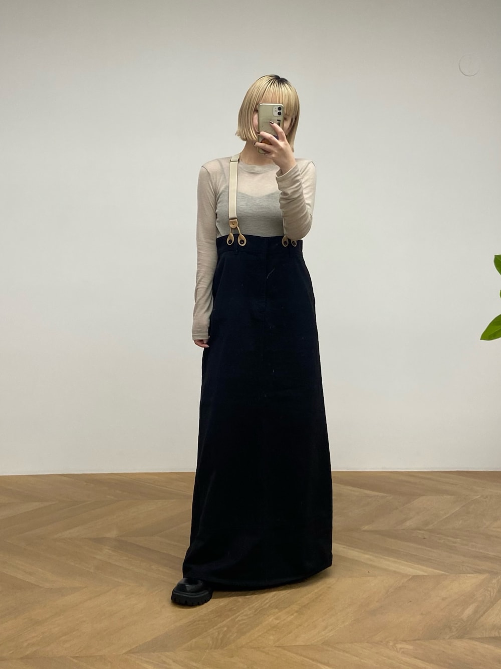 ☑︎新作のサスペンダースカート♡ 身体のラインを拾わず、Aラインが綺麗でスタイルアップ効果◎ 長さ調整も可能です✨