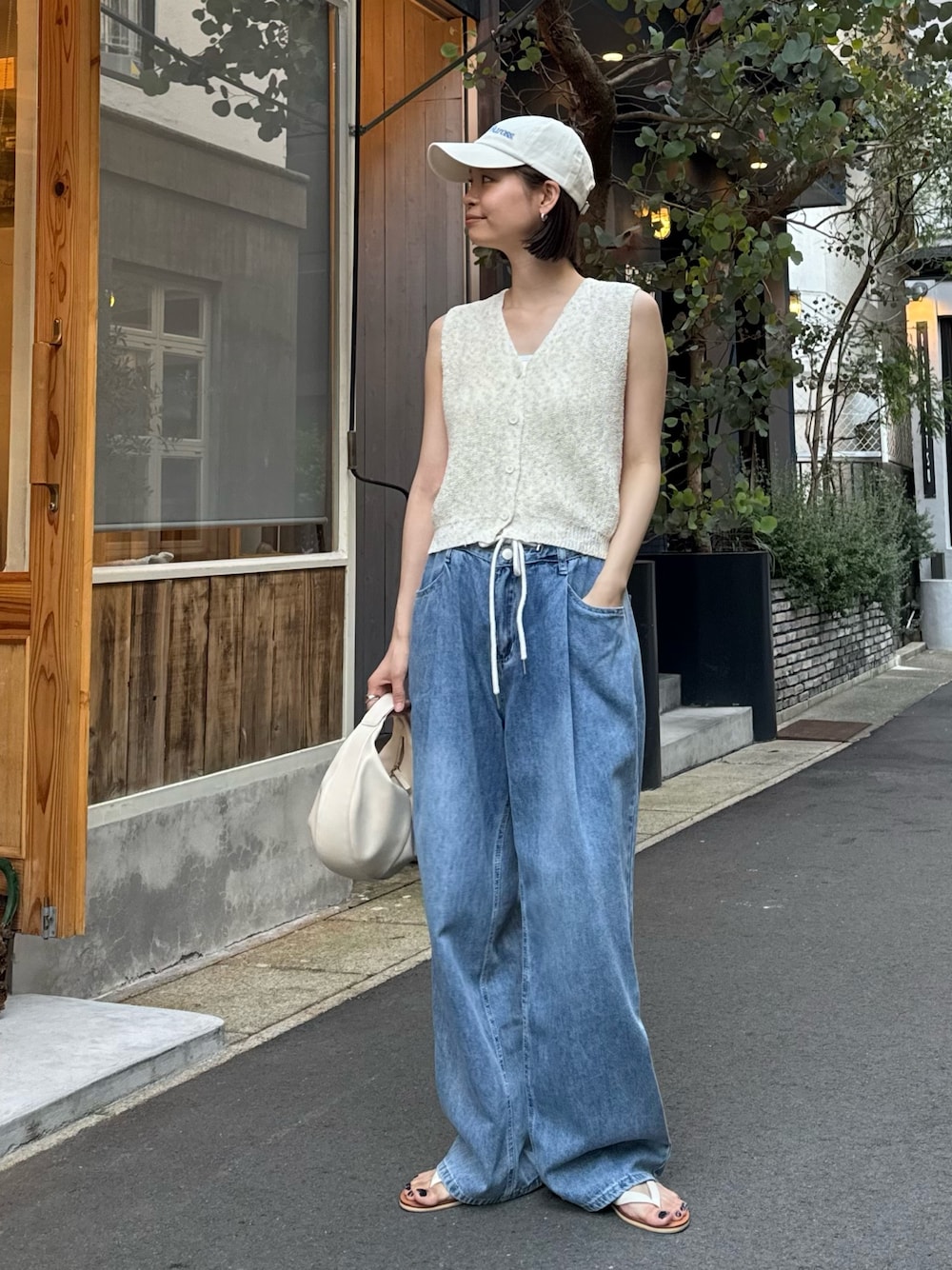 YUKKOのベスト「El mar コットンリネンメランジニットボタンベスト」を使ったコーディネート