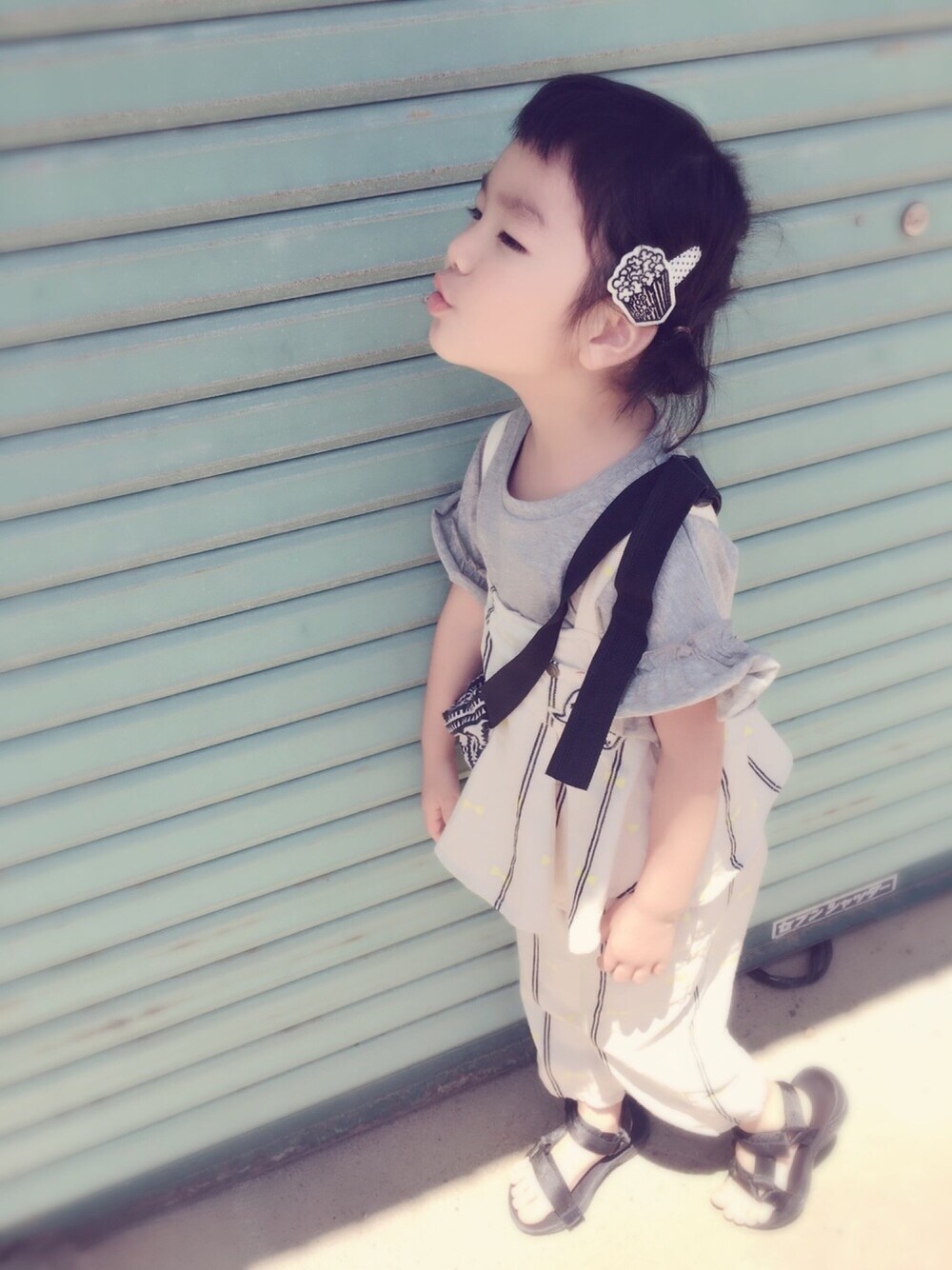 今日はちょっとスーパーまで… 行くまでが長い‼︎行ってからも長い‼︎ 『なんでスーパーこんなにお菓子がいっぱいあるんだょ‼︎ひなちゃん選べない‼︎😡🗯』 。。。。なにそれw でも今日自転車乗れたー🚲すごーい♡結果嬉しい母の日でした😊 このサロペ、かわいぃ❤️ 見てくださり、ありがとうございます♡