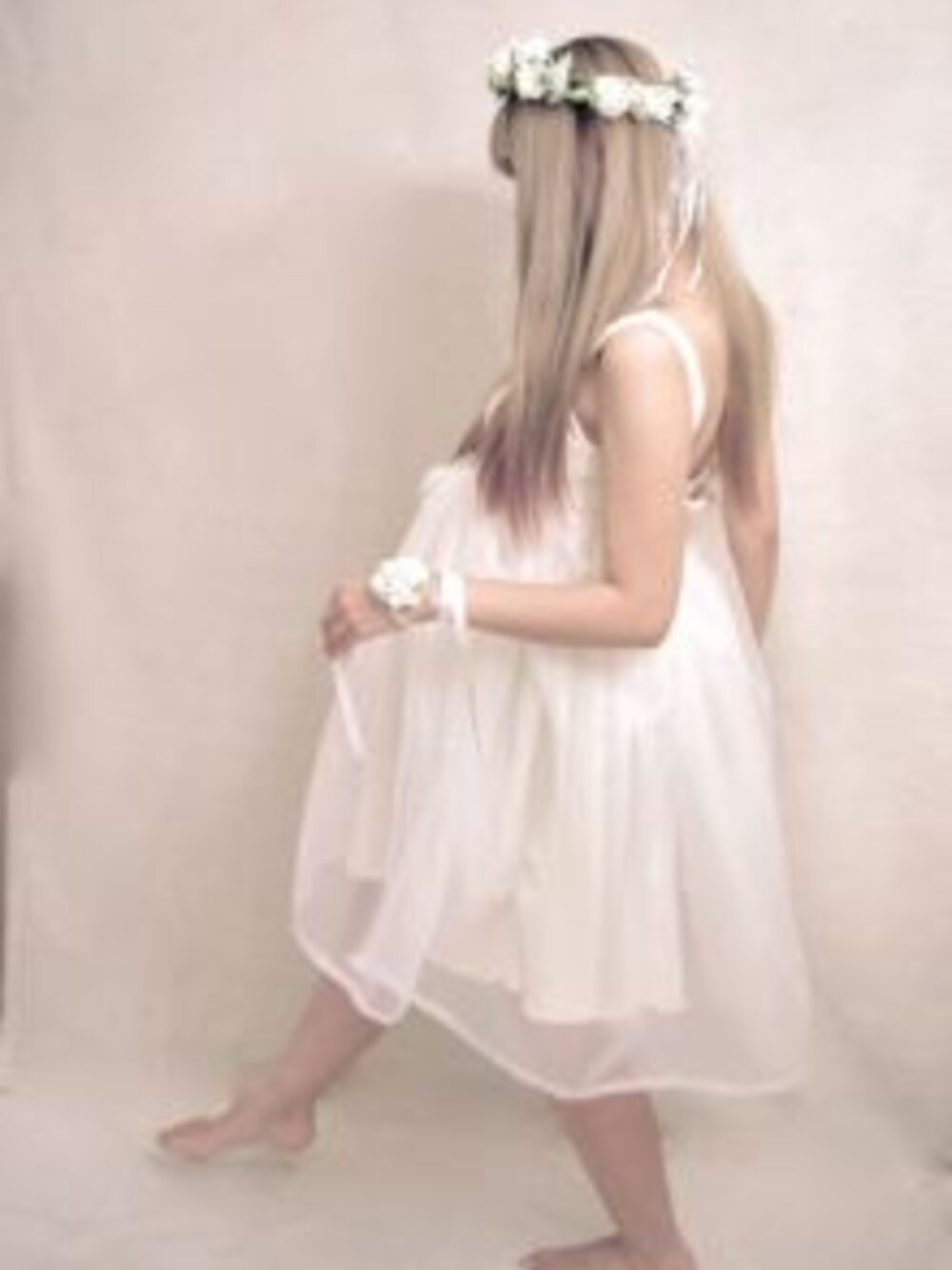 ホワイト系のワンピースを着用したレディースの春コーディネートの1枚目の写真