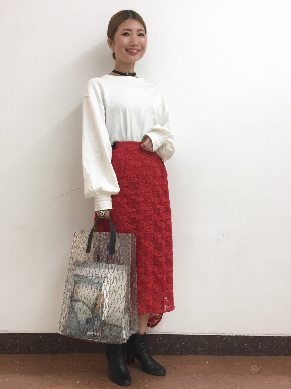 この秋、初めてブーツを履きました。ブーツの合わせて黒のチョーカーを。